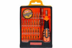 Tournevis à cliquet réversible compact, accompagné de 10 embouts. Prenant peu de place, il prend facilement place dans une boîte à outils et permet de dévisser de nombreuses vis avec une tête plate, cruciforme ou torx.