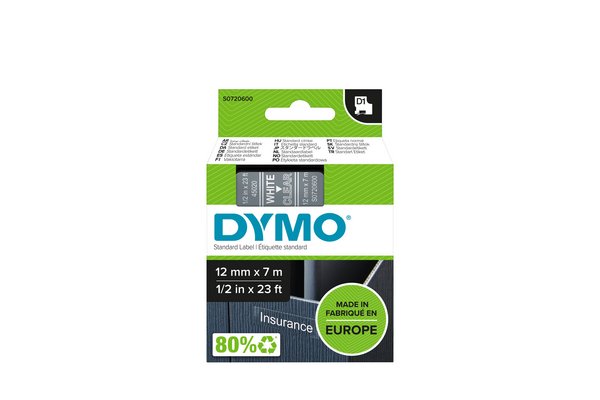 Ruban D1 Dymo blanc sur transparent